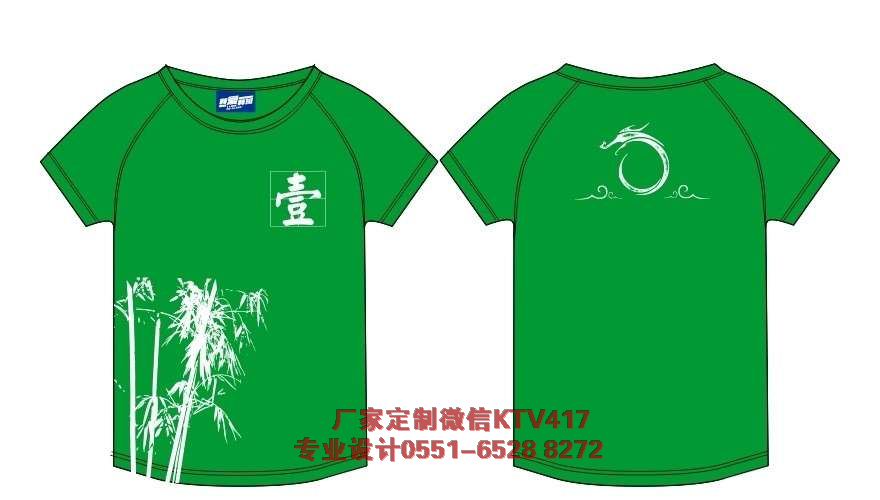 下面這款圖案采用的是綠色的圓領文化衫印刷白色的壹,有種拼音填字的感覺,很有文化衫底蘊。衣服下面的是竹子圖案。代表著節(jié)節(jié)高。后領圖案是盤旋的龍,代表著龍圖騰。