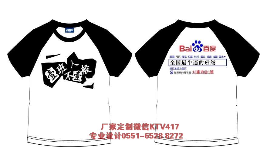 壹班班級服裝采用的是白色的插肩袖文化衫,正面是一班人不壹班,后面是百度搜索框全國最牛逼的班級。