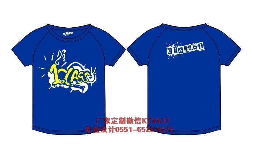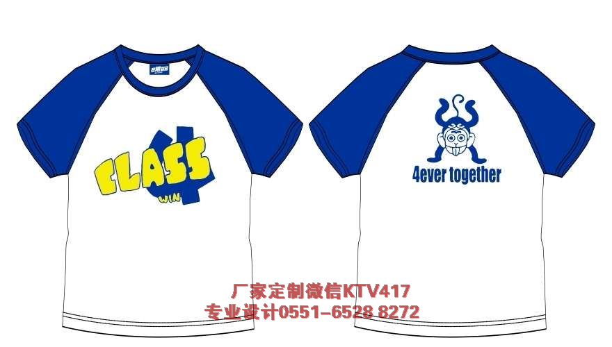 一班班級(jí)文化衫圖片,這款是4班的班級(jí)服裝,采用的是圓領(lǐng)插肩袖文化衫,前面印的是CLASS 4,后面印的是小猴子。