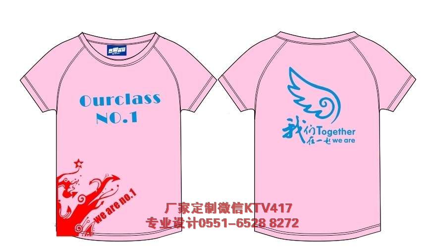 下面這款粉色的壹班班衫,采用的是前印刷OURCLASS NO.1藍(lán)色 的圖案,后面是我們TOGETHER 我們?cè)谝黄,翅膀,很有?chuàng)意。