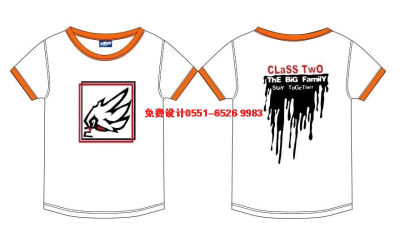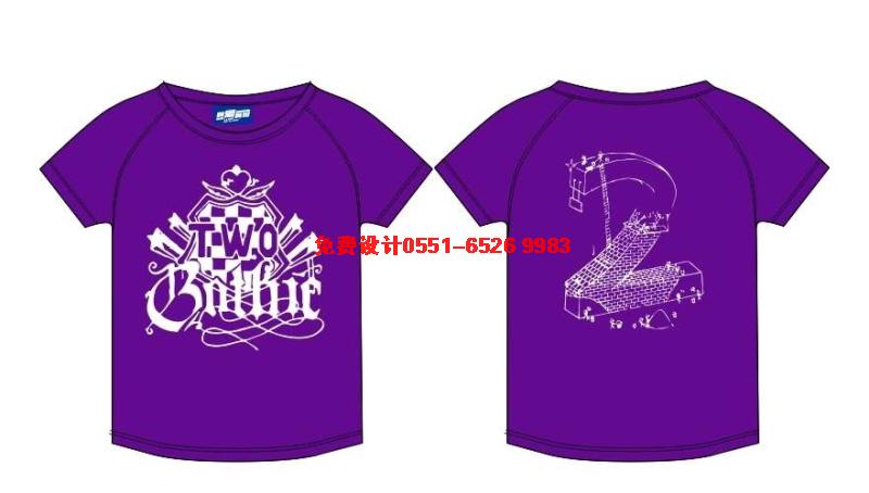 這是紫色的圓領(lǐng)T恤班服,圖案采用白色環(huán)保漿料印刷?此苼y,其實是個性張揚的表現(xiàn)。后面是立體數(shù)字2
