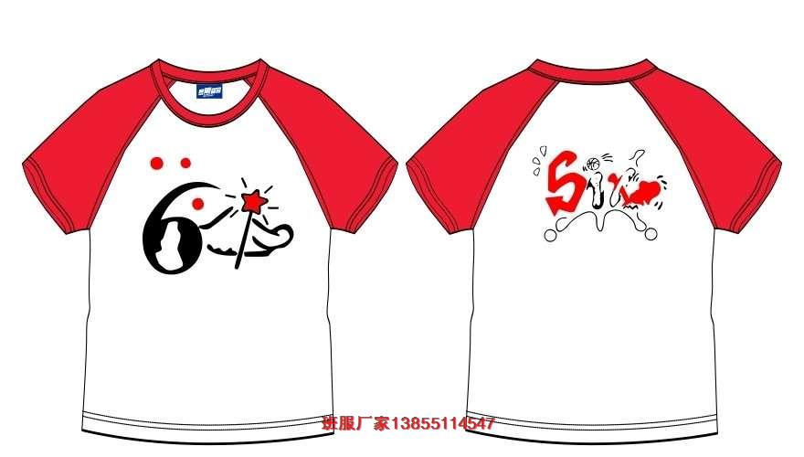 6班版衫圖案,這款6班版衫圖案采用的是紅黑相間的圖案,左邊是黑色的數(shù)字6,右邊是紅色的小星星。版衫后背圖案是字母SIX加愛(ài)心圖案。班服底衫采用的是紅色插間袖文化衫。