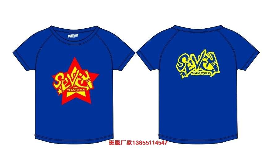 7班班服圖片,這款7班班服圖片,底衫是藍(lán)色T恤衫,前面印刷紅色的