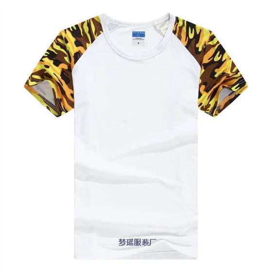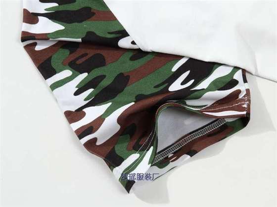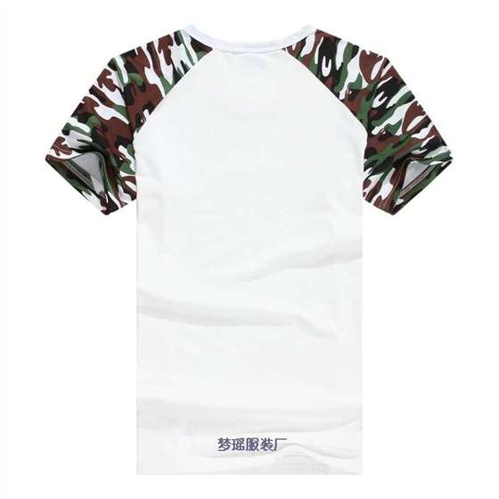 這款迷彩短袖文化衫,采用白色拼迷彩款式設(shè)計。迷彩顏色有海陸空顏色,也就是綠色迷彩,紅色迷彩,黃色迷彩。