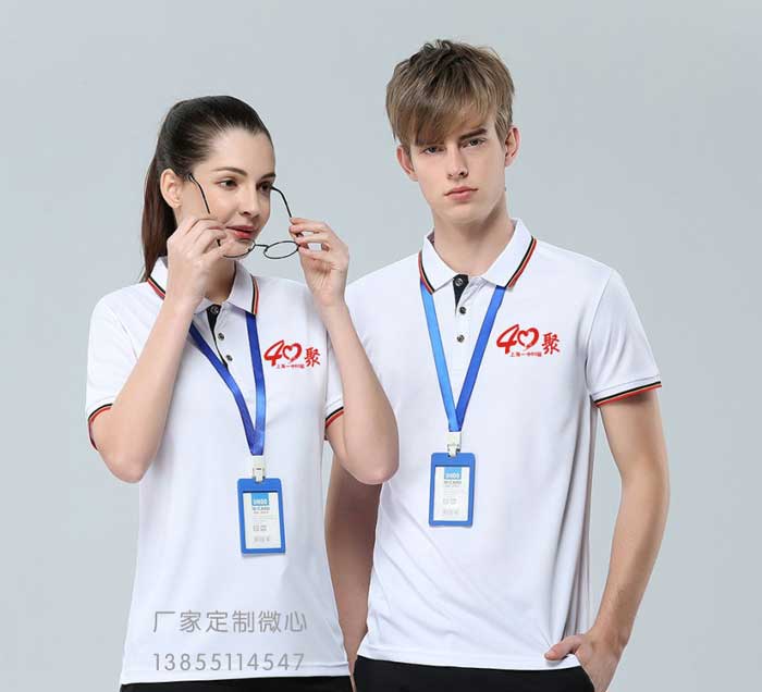 翻領(lǐng)款聚會服裝,相對于圓領(lǐng)服裝,價格高點。適合對服裝款式有要求的聚會班級。常用的翻領(lǐng)服裝顏色也是白色,紅色。