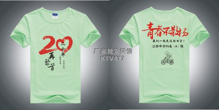 相聚30年衣服印字圖案設(shè)計。對于一件聚會T恤來說,圖案 是整件衣服的靈魂所在。可以這么說一件聚會T恤的好看與否和圖案有hen大關(guān)系!圖案好看衣服就好看!圖案是關(guān)鍵。同學(xué)聚會衣服印字大全如何設(shè)計一款適合聚會場合的T恤圖案呢?首先要看是圓領(lǐng)T恤還是翻領(lǐng)T恤,區(qū)別對待,有針對性的設(shè)計。對于圓領(lǐng)T恤來說,圖案設(shè)計的要素是聚會年限,班級名稱,班級專業(yè),聚會口號等有關(guān)。